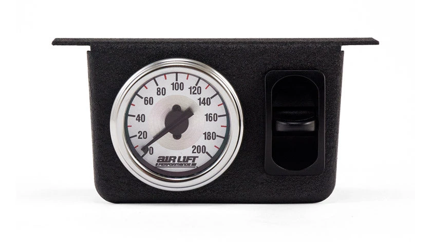 A single needle 200 psi gauge with a manual/paddle valve installed with mounting bracket. This is the most economical way to get oboard control on your front OR rear air suspension.