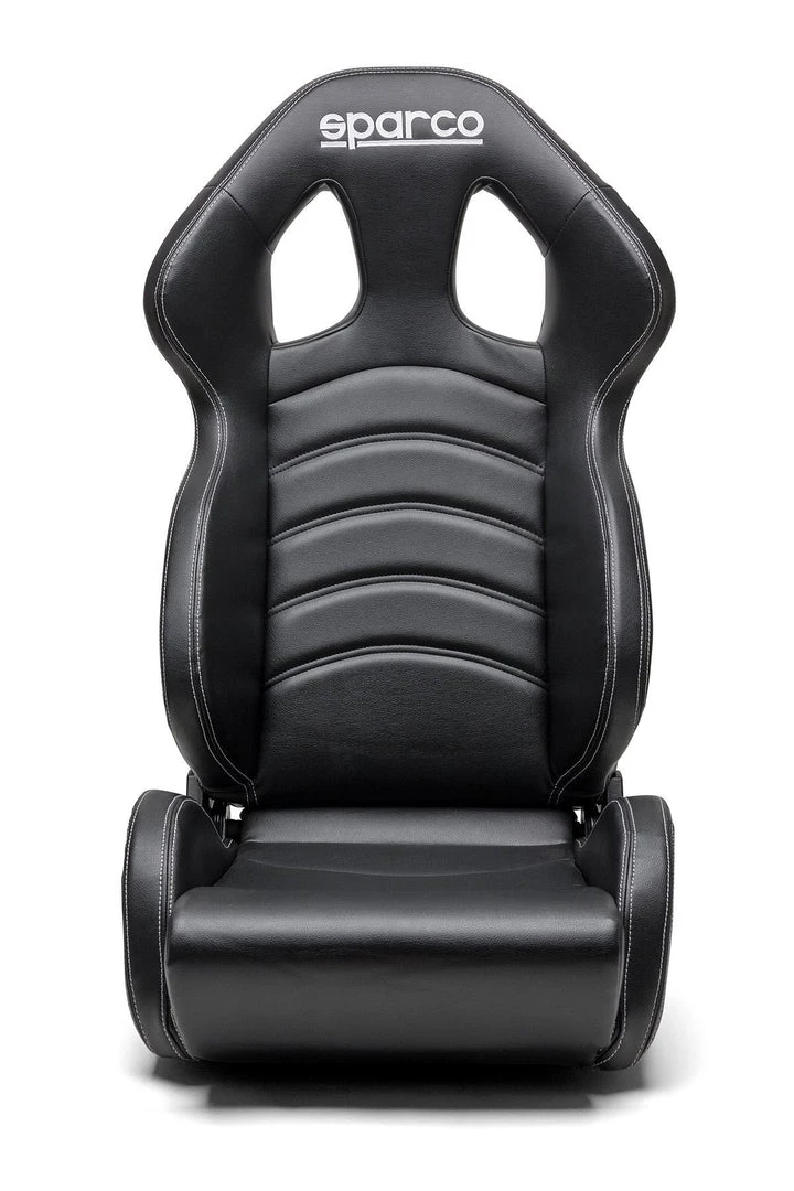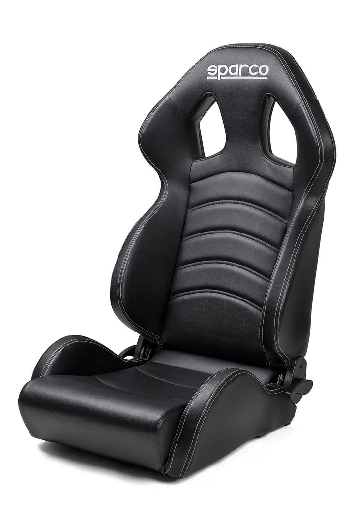 Drawing on our decades of racing history, Sparco has created an extensive line of street car seats that offer the ultimate in comfort and performance. Our ergonomic designs help cradle and protect the driver against even the most demanding lateral forces. The Chrono Road is a sleek seat that takes styling cues for our collaboration with Lamborghini. This black seat features white contrast stitching on the exterior and seat and back padding for extra comfort. The aggressive side and thigh bolsters hold and protect the driver. The Chrono Road seat has a full suspension bottom and generous sizing for added comfort. Available in 2 sizes, STANDARD and LARGE.