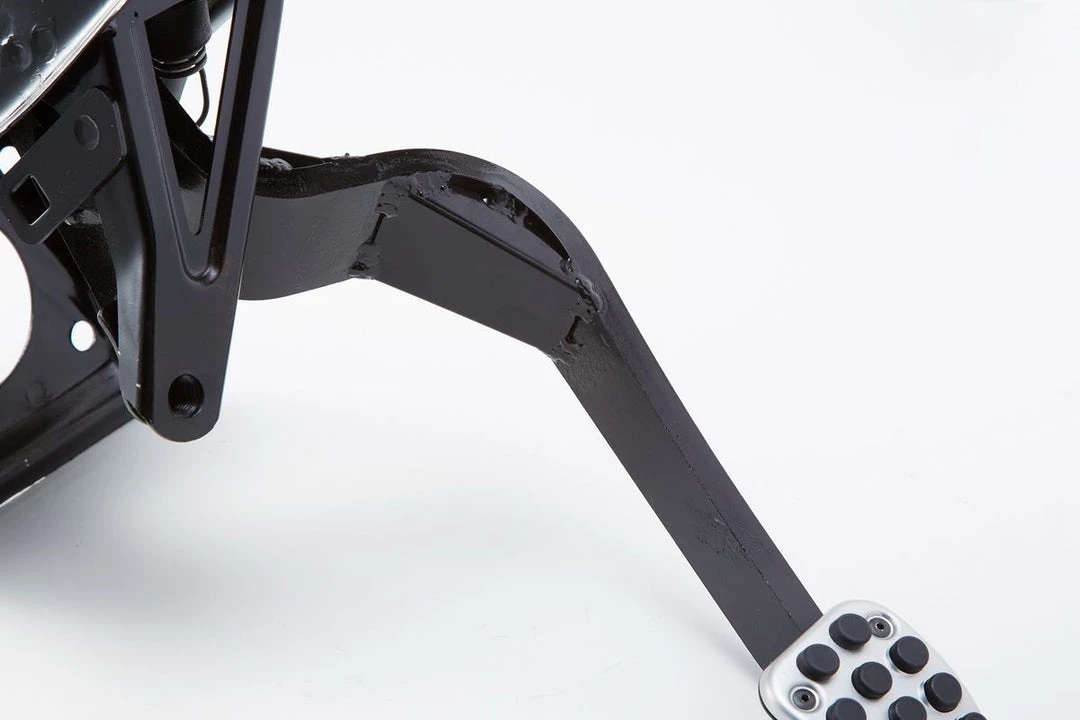 Over long term use or racing, the factory brake pedal can bend or become loose. To prevent distortion, the Spoon Brake Pedal Box is reinforced at the mounting bracket and at the pedal arm. The gusset plates add additional strength and rigidity for an improved and consistent brake feel.