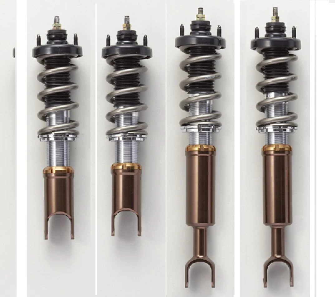 Spoon Full Spec Coilovers feature a chromoly steel body with aluminum components and perches. Independent compression and ride height adjustability with 45mm piston 1-way adjustable shocks. Highly recommended for high end users and circuit racing. All kits come with springs and uppermounts. Springs Rates: Front 14 kg/mm, Rear 12 kg/mm. Spoon recommended fender ride heights: Front 645mm, Rear 635mm