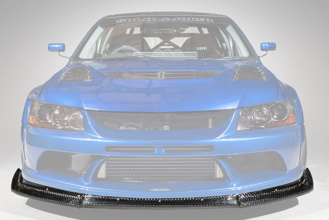 Featuring a 12k Carbon Fiber front lip to match the widebody FRP front bumper, this aero suite will make your Evo stand out without looking like it got lost looking for the Track.