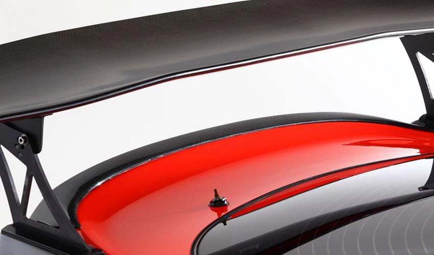 Rear trunk spoiler is composed of carbon. It is designed and manufactured by Ridox, a company by Varis. Trunk spoilers are designed to increase performance by creating more downforce, enhancing handling during high speeds on race tracks.